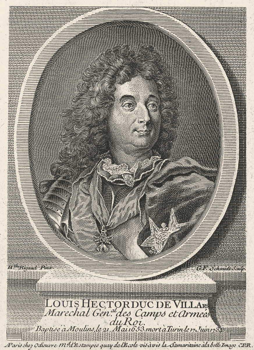Louis Hector Duc de Villars, Maréchal Général des Camps et Armées du Roi, par Georg-Friedrich Schmidt, d’après Hyacinthe Rigaud, 1737, musée national des châteaux de Versailles et de Trianon. © EPV / DR