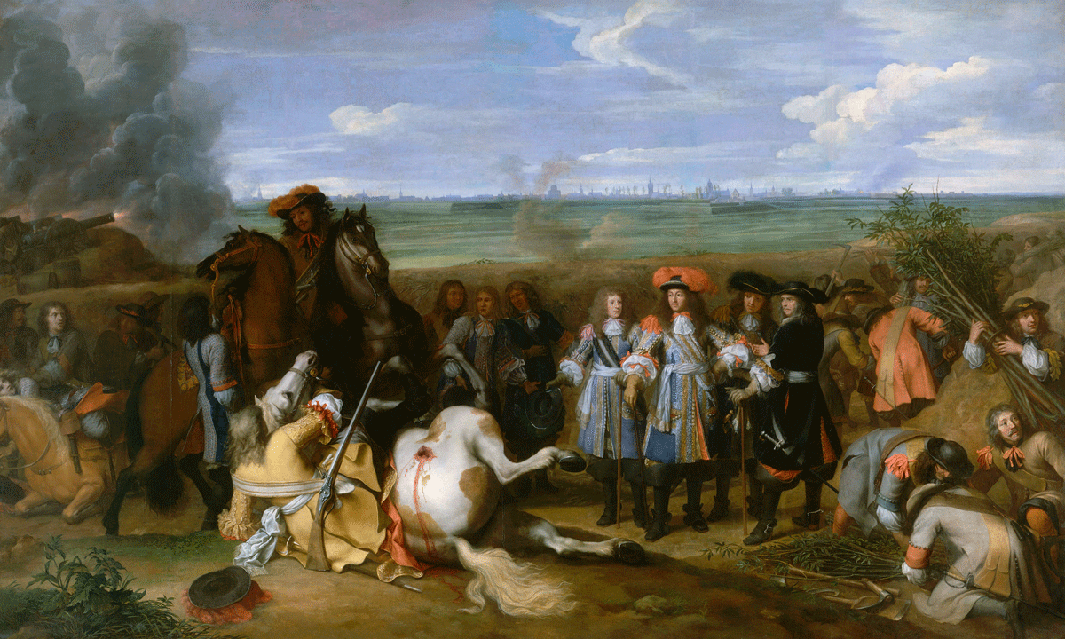 Le Roi-Soleil peut alors se lancer dans des campagnes militaires visant à agrandir et sécuriser le royaume. La guerre de Dévolution (1667-1668) et la guerre de Hollande (1672-1678) permettent notamment de consolider les frontières par des conquêtes comme celle de la Franche-Comté.
