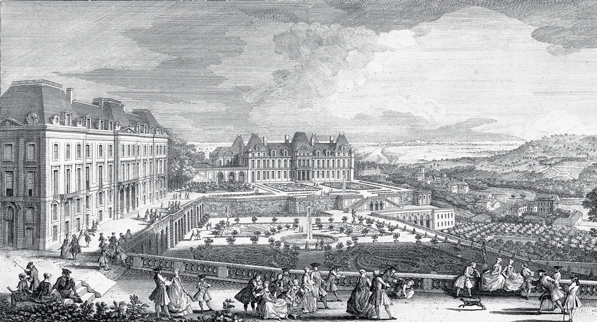 Veue du chateau de Medon, du Coté des parterres [détail], par Jacques Rigaud, 1733, musée national des châteaux de Versailles et de Trianon. © EPV / Christophe Fouin