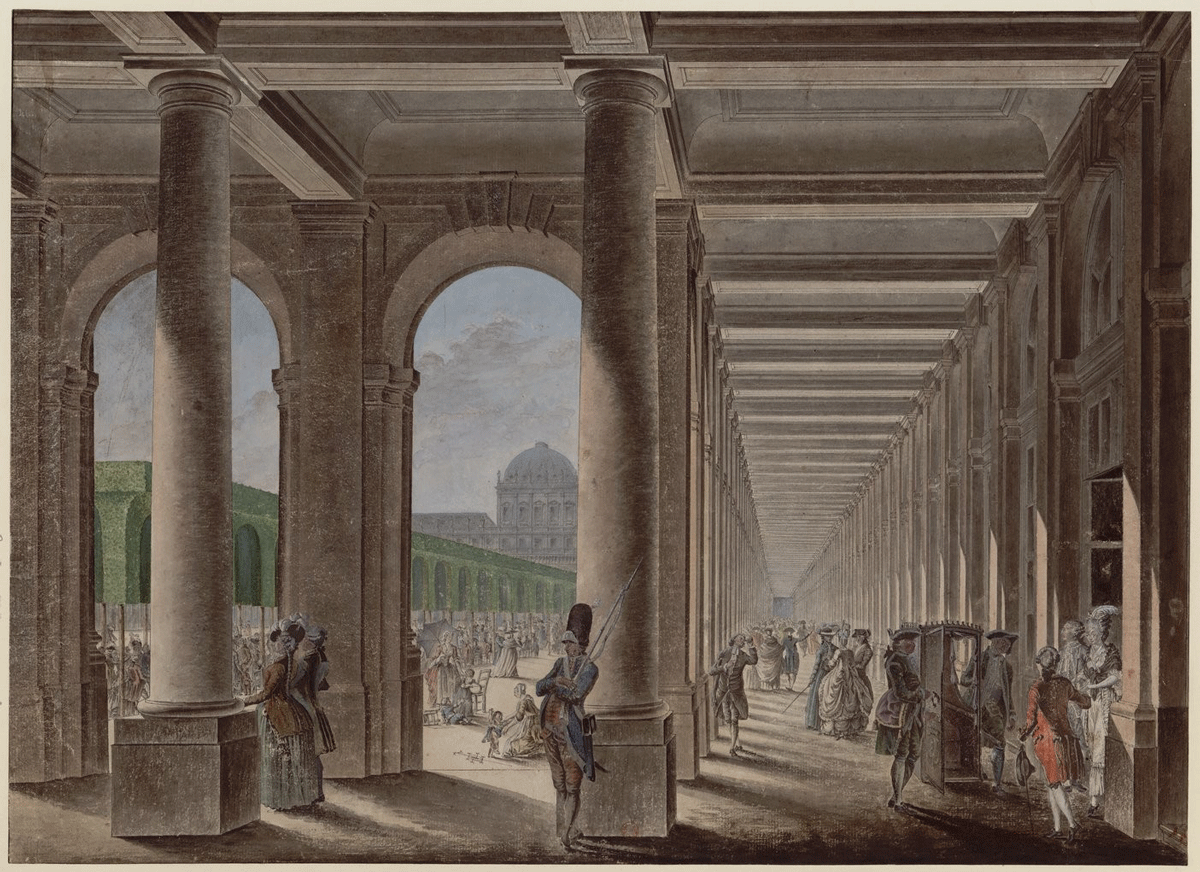 Galerie et jardins du Palais-Royal au XVIIIe siècle, Paris, Bibliothèque nationale de France. © Bibliothèque nationale de France (BnF) / Département Estampes et photographie