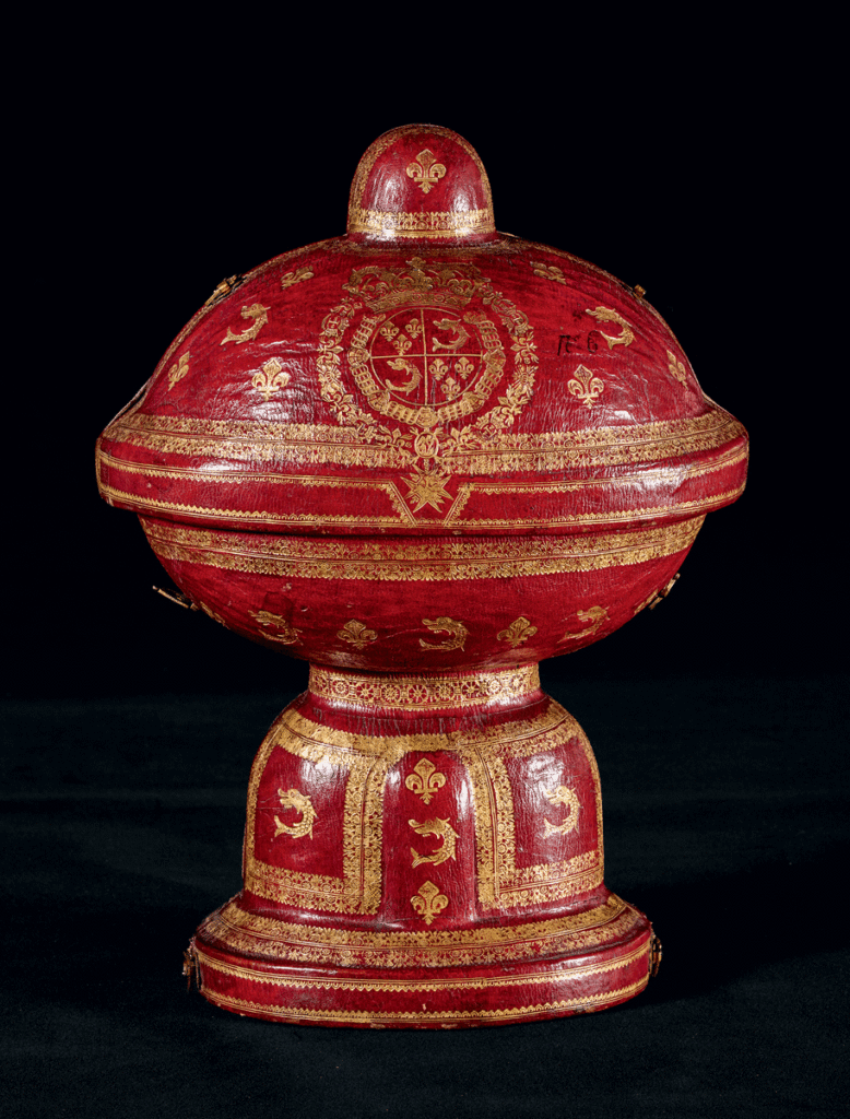 Tout au long de sa vie, Monseigneur continua d’enrichir sa collection grâce à des achats effectués à cette même foire et auprès de grands marchands parisiens2. Il s’y rendait souvent avec son oncle, Monsieur, frère de Louis XIV, et son fils, le duc de Bourgogne, accompagné de son épouse. Sa femme, la dauphine Marie Anne de Bavière, des membres de la famille royale et quelques courtisans lui offrirent des vases de pierres dures, tous certains de lui faire plaisir. Le don le plus célèbre par son ampleur, ainsi que par son origine exotique, demeure le présent diplomatique de Phra Naraï, roi du Siam (actuelle Thaïlande), lors de l’ambassade reçue à Versailles en septembre 1686. Il comprenait, entre autres choses, 50 laques du Japon – qui furent les plus appréciés – 343 porcelaines et 45 objets d’or et d’argent de Chine et du Japon.