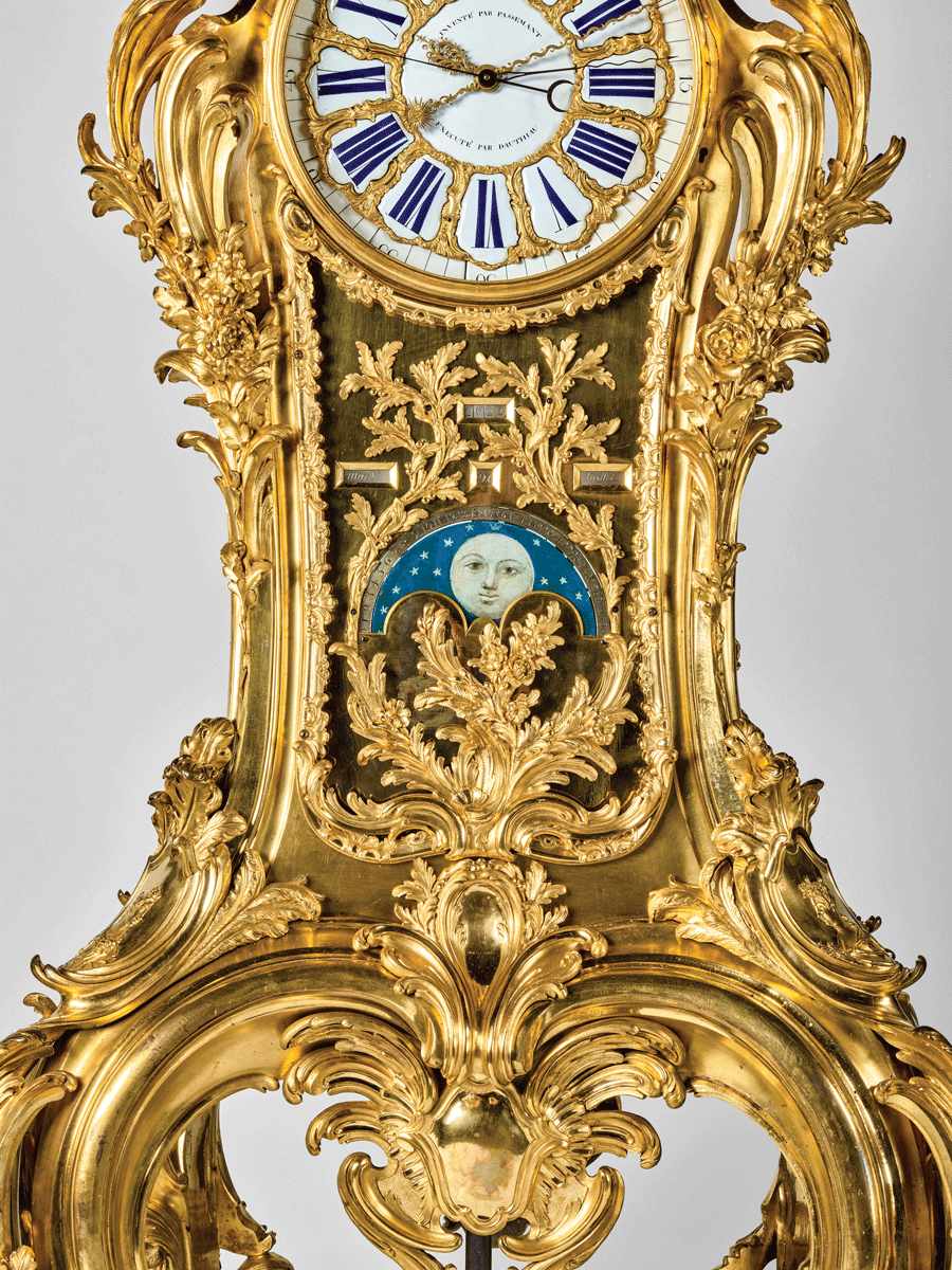 Le corps central de la pendule de Passemant après restauration, avec ses bronzes virtuoses à l’effet satiné. © EPV / Christophe Fouin