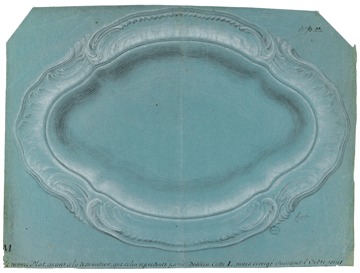 Modèle du « grand plat ovale » dessiné par Jean-Claude Chambellan dit Duplessis père, Sèvres, Manufacture et musée nationaux.