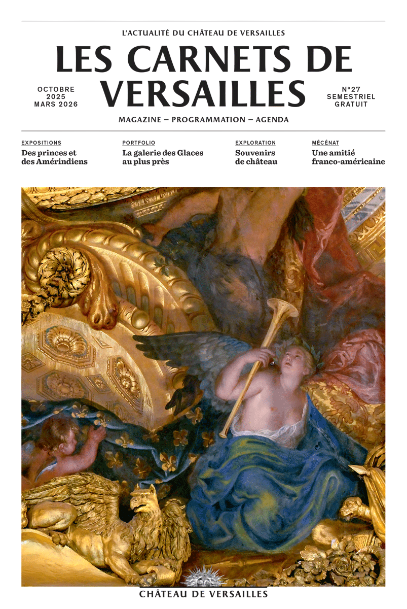Chaque semestre, recevez gratuitement dans votre boîte aux lettres le magazine-programme Les Carnets de Versailles. Reportages sur les coulisses de Versailles, articles autour des expositions, des spectacles et autres événements qui jalonnent la vie du Château, agenda… Les Carnets vous présentent toute l’actualité du Domaine.